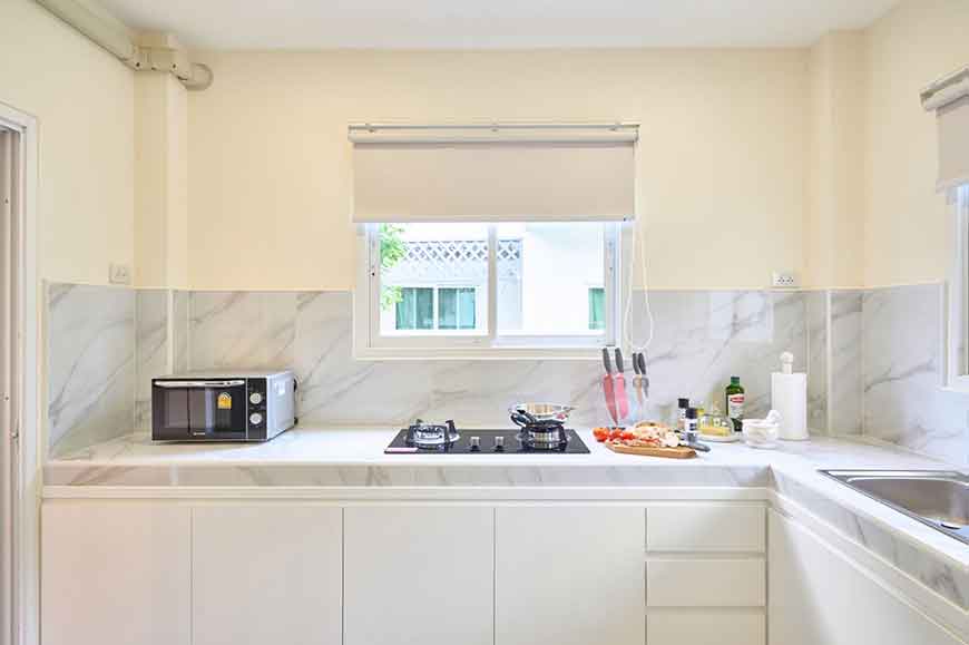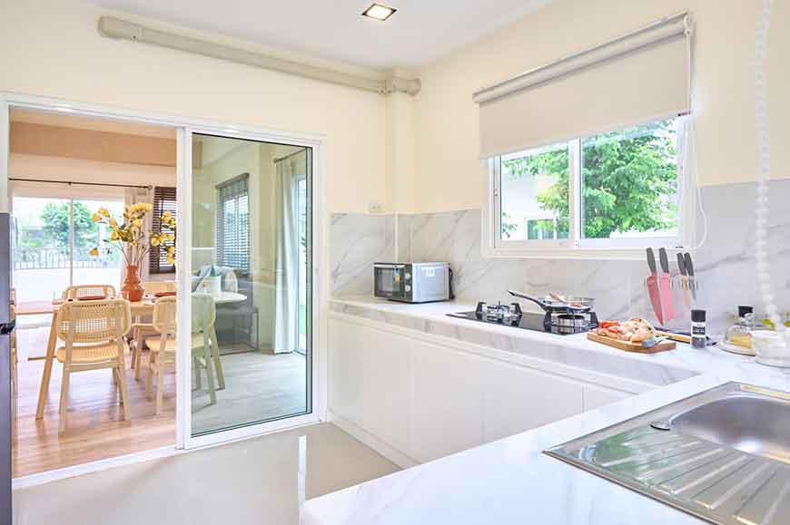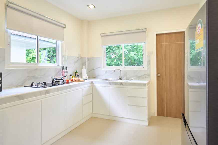 ● เคาน์เตอร์ครัวบิลท์อินพร้อมเตาแก๊สและซิ้งค์