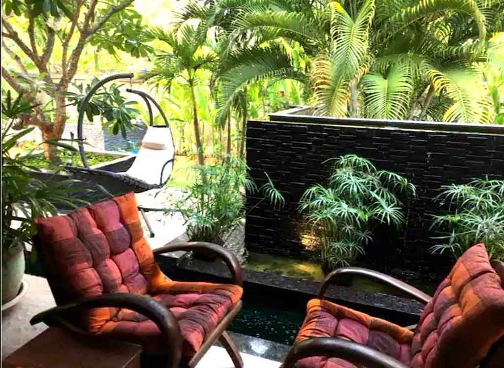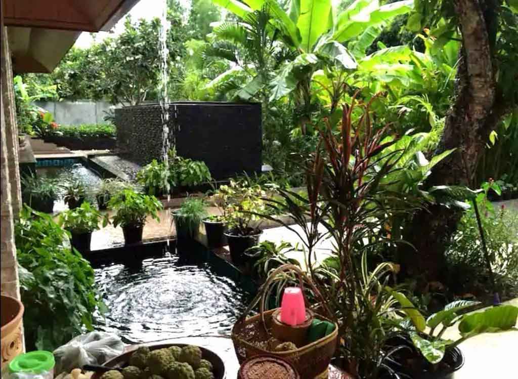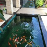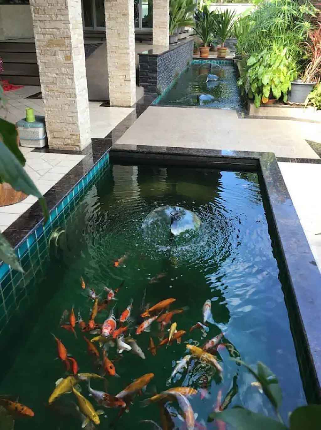 ◾ Dining Pavillion – outdoor dining area with fish pond and double waterfall