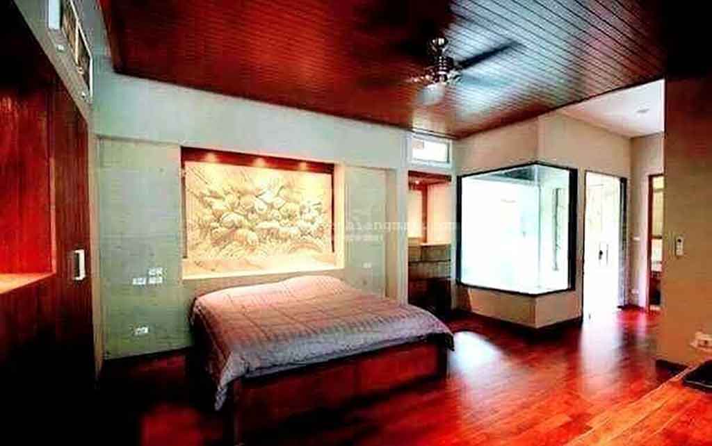 This house is built to very high specifications: flooring for example is mainly teakwood and hand glazed ceramic tile, walls and pillars are clad in sandstone and imported granite. The construction cost per square meter is roughly 3 times higher than the average house in Thailand. The architecture and interior design are completely original – you will not find another property quite like this in Chiang Mai.